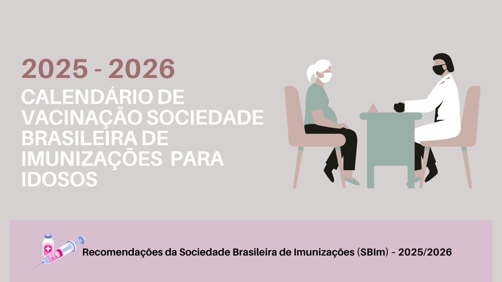 Acesse o calendário de vacinação da Sociedade Brasileira de Imunizações com orientações das vacinas para IDOSOS 2025/2026: Para fazer download do calendário, clique aqui